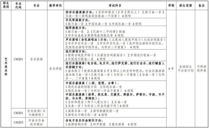 3.我校2024年音乐表演专业只招收以下所列种类,凡未列出的种类该年不接受报考,具体如下: